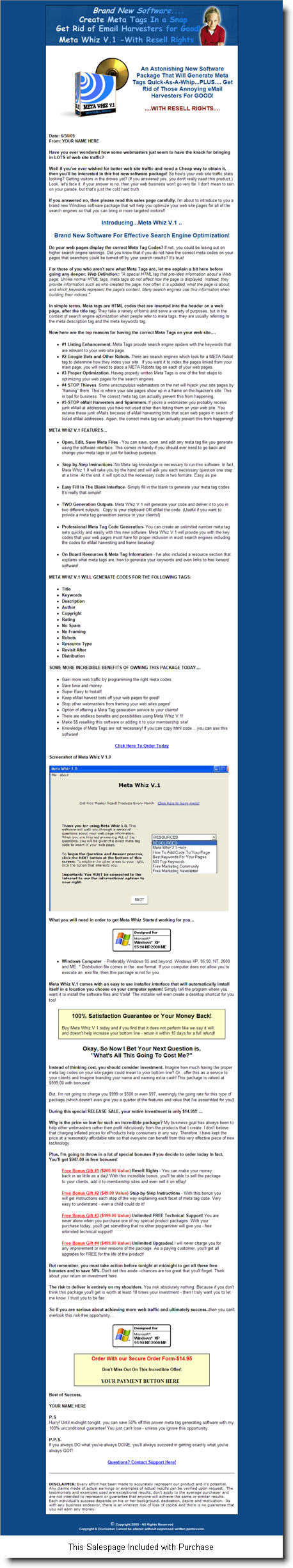 An Astonishing Software Package That Will Generate Meta Tags Quick-As-A-Whip...PLUS.... Get Rid of Those Annoying email Harvesters For GOOD! |