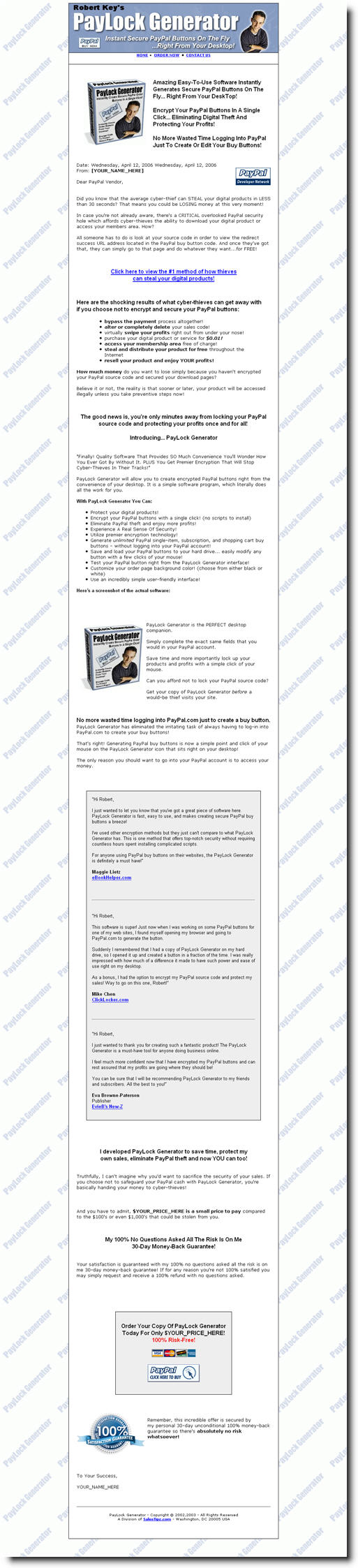 I just wanted to let you know that you've got a great piece of software here. PayLock Generator is fast, easy to use, and makes creating secure PayPal buy buttons a breeze!