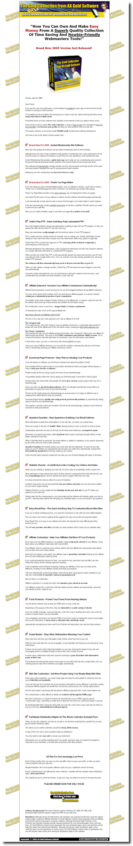 Today I'd like to tell you about The Gold Collection, a range of easy to use tools, designed to save you time and effort, help increase your profits and help you avoid problems with your web site.