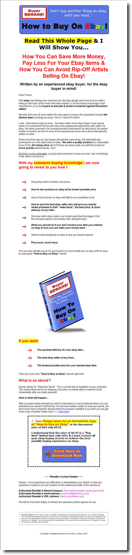 You can now outright use all my secret tactics to successfully buy on eBay with my easy to read guide "How to Buy on EBay" ebook.
