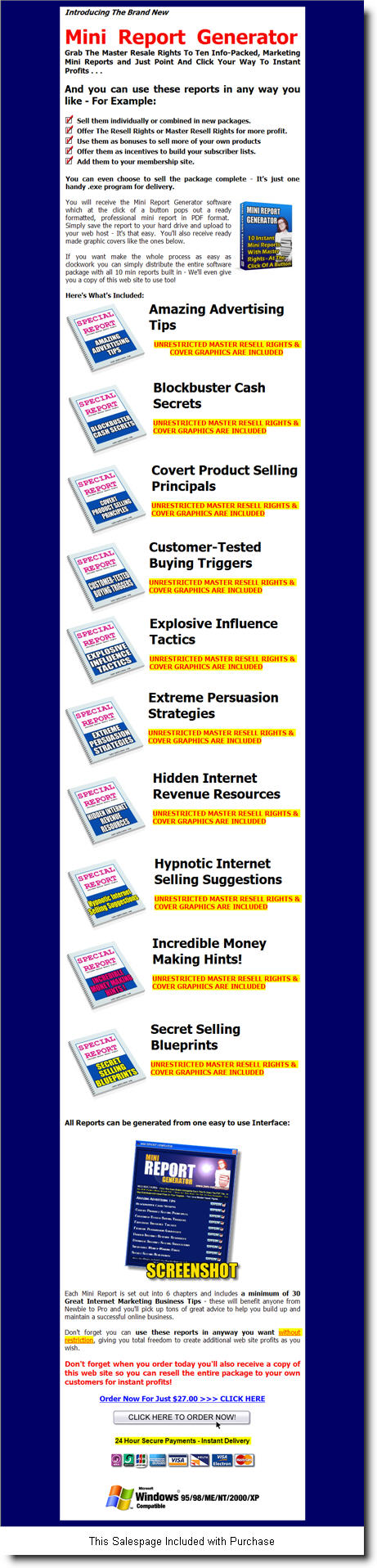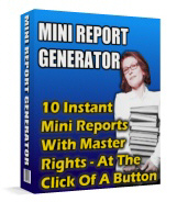 Mini Report Generator Grab The Master Resale Rights To Ten Info-Packed, Marketing Mini Reports and Just Point And Click Your Way To Instant Profits . . . And you can use these reports in any way you like - For Example: