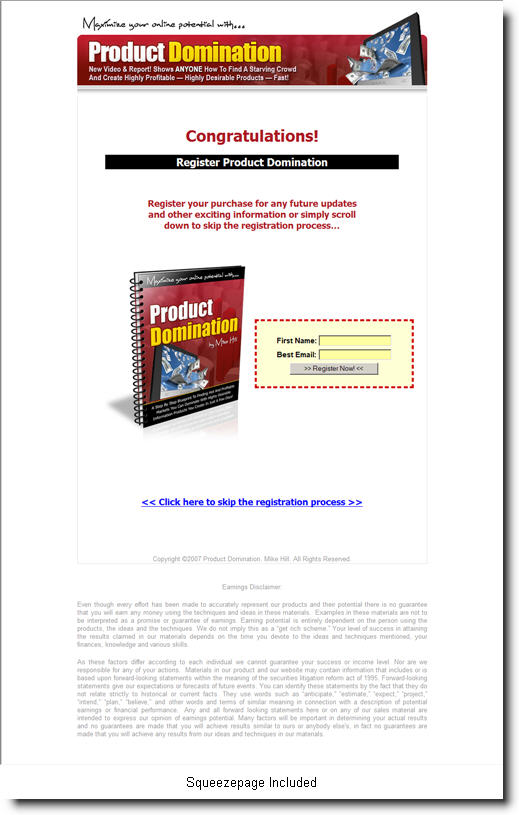 | Extra Pages: | Squeezepage (see above screenshot), One Time Offer |