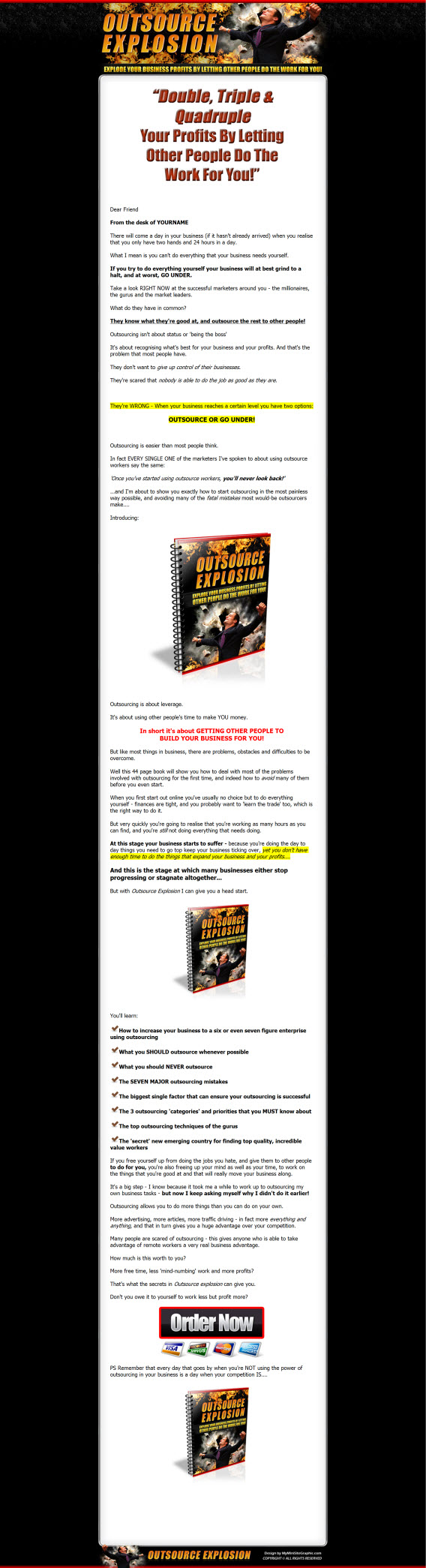 Outsource Tactics Unleashed (PLR)Sick & Tired Of Having To Do Everything On Your Own? Outsource the work for pennies on the dollar.