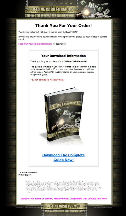 I can start offering my services to every company like my own, and get 100% profit instead of a hourly wage. Offline Cash Formula will show you every strategy in how to make the big bucks working from home.