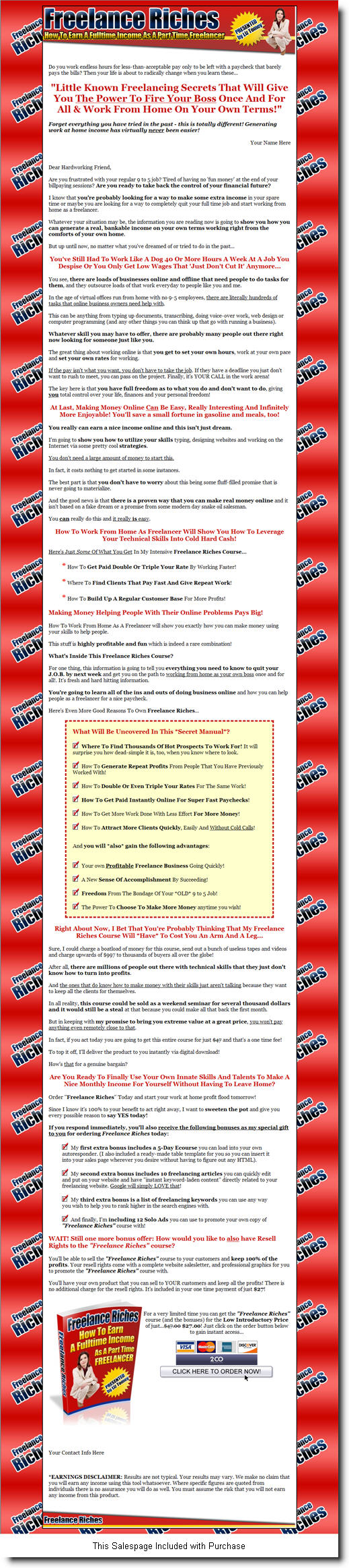 Freelance Goldmine (PLR)Quit the daily grind and start making money with maximum cash freelance opportunities that are up for grabs.