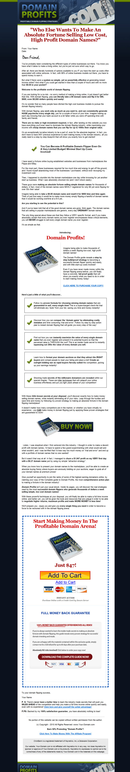 The Domain Profits guide reveals a step by step bulletproof strategy to becoming a successful domain flipper quickly and easily, and with little start-up costs involved!