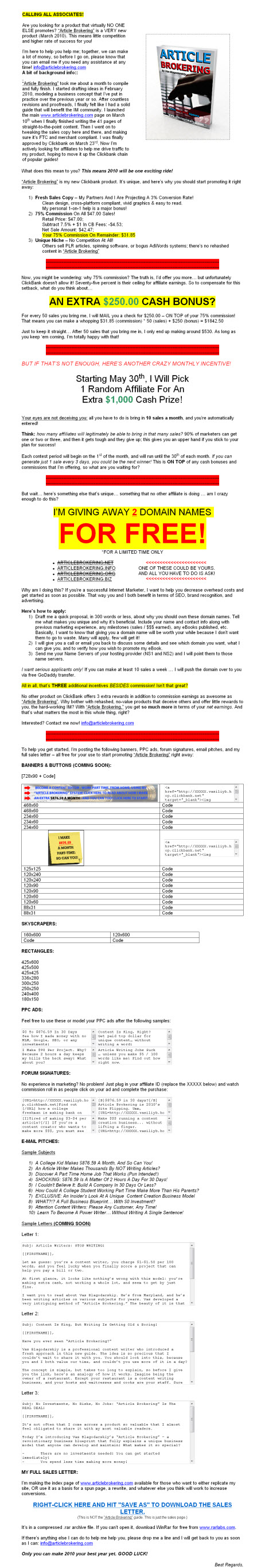 It’s easy. It’s fun. And it’s risk free. Those three components are the fundamental blocks that make up the "Article Brokering" approach. Let me tell you about just some of the highlights: