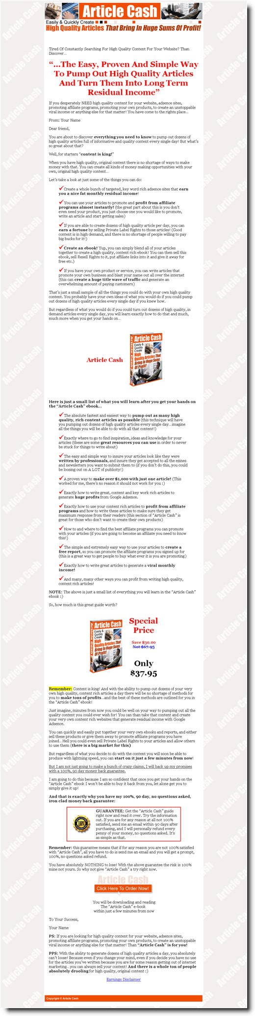 - Exactly how to use your content rich articles to profit from affiliate programs and how to write these articles to make sure they get maximum response from their readers (this section of “Article Cash” is great for those who don’t want to create their own products)