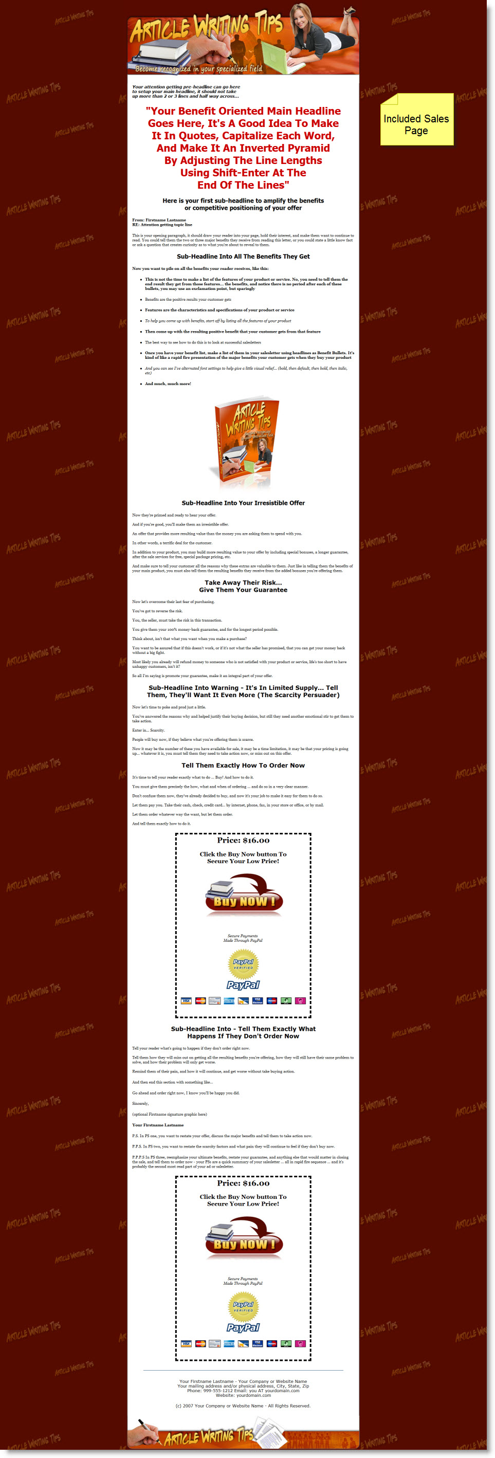 - Includes Sales Page - Yes
