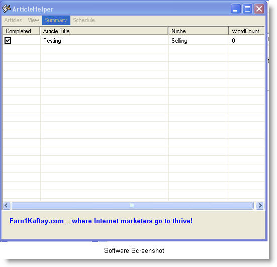 This neat software tool is meant to, as the name implies, help you write articles. It will put your "in-progress" and completed articles all in one spot, you can organize them by word count, title, niche.