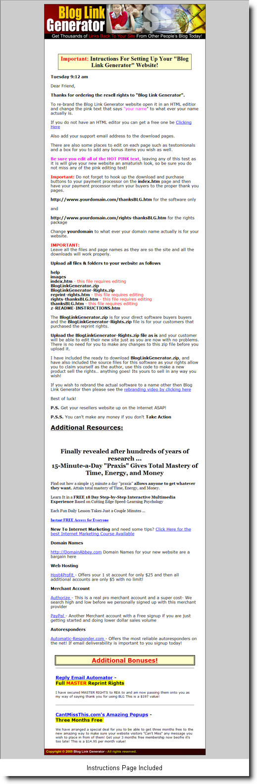 - FAST results – After Blog Link Generator makes your post it sends that persons blog to Pingomatic automatically to make sure you link is picked up in record time!