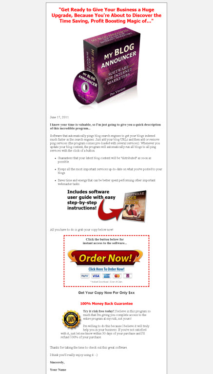 Software that automatically pings blog search engines to get your blogs indexed much faster in the search engines. Just add your blog URLs and then add or remove ping services (the program comes pre-loaded with several services). Whenever you update your blog content, the program will automatically run all blogs to all ping services with the click of a button.