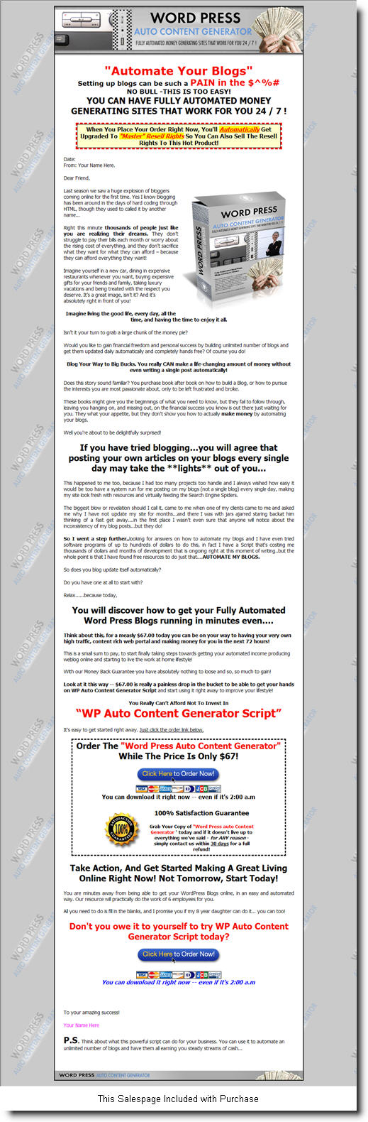 You will discover how to get your Fully Automated Word Press Blogs running in minutes even