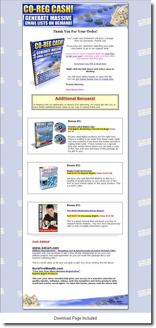 - Includes Download Page - Yes