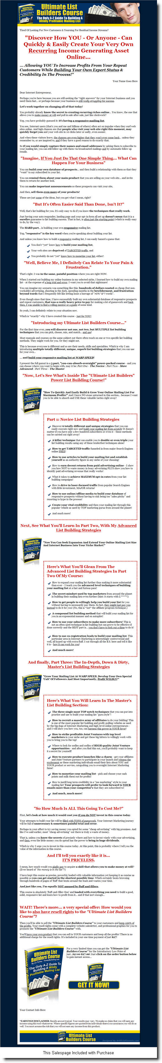 - Includes Sales Page - Yes
