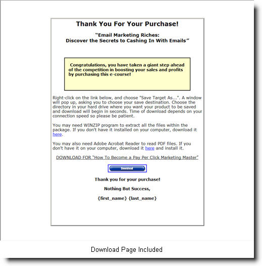 Email Marketing Riches" is your complete guide to profiting with email, and it covers everything from starting your list of targeted subscribers to writing persuasive emails that sell, to the finer points about email delivery methods and tracking. In short, you'll learn everything you need to know to profit with email. Take a closer look...
