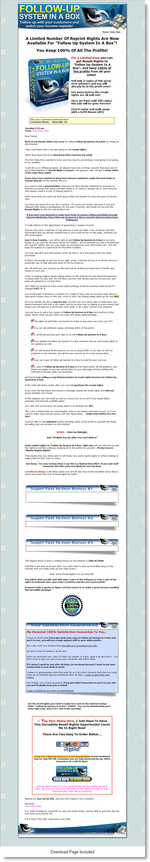 Follow Up System In A Box Will Allow You To Make Tons Of Additional Sales To Existing Customers...