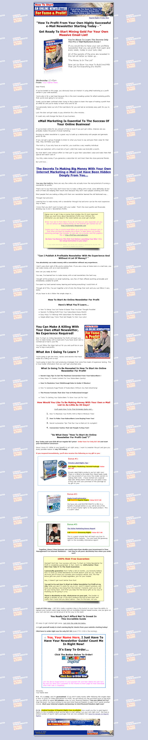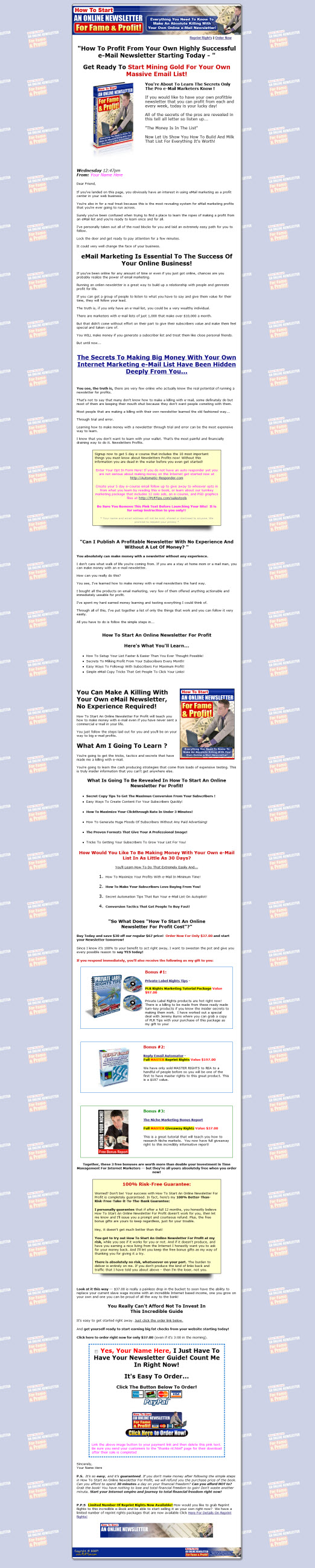 How To Start An Online Newsletter For Profit will teach you how to make money with e-mail even if you have never sent a commercial e-mail in your life.