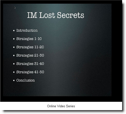 - And much, much more! - In fact there are 50 Lost IM Secret Strategies in this new and exclusive Video Presentation