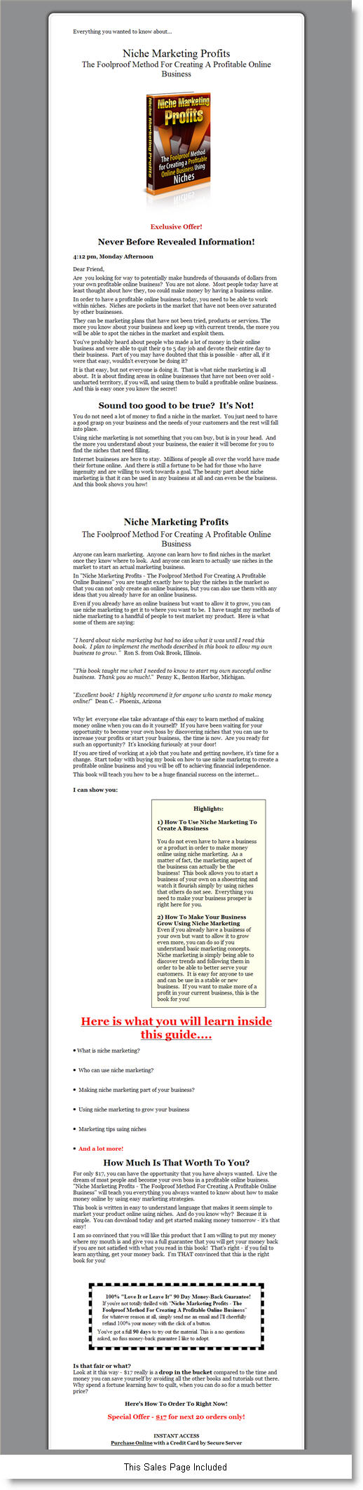 - Includes Sales Page - Yes