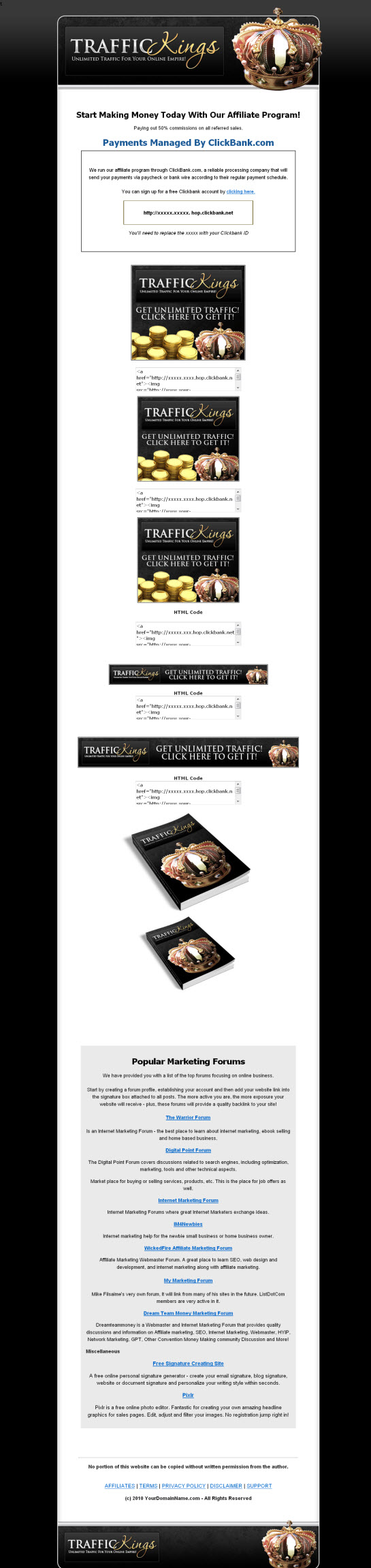 Traffic Kings was created to provide a simple, fast action strategy to building highly effective traffic campaigns that will flood your website with an unstoppable supply of fresh, targeted traffic quickly and easily.