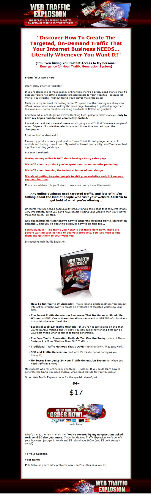 Of course you DO need a good quality product and a sales page that converts (that's very important), but if you don't have people visiting your website then you'll never make the sales. Full stop.