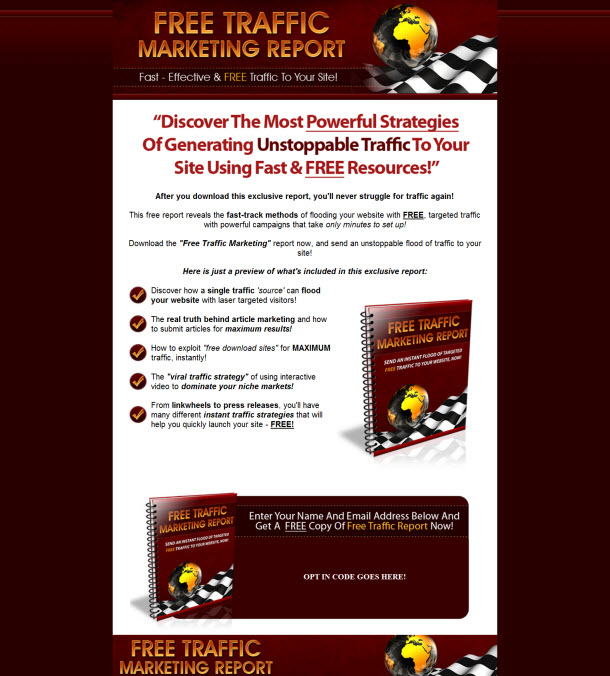 Get the "Free Traffic Marketing" report now, and send an unstoppable flood of traffic to your site!