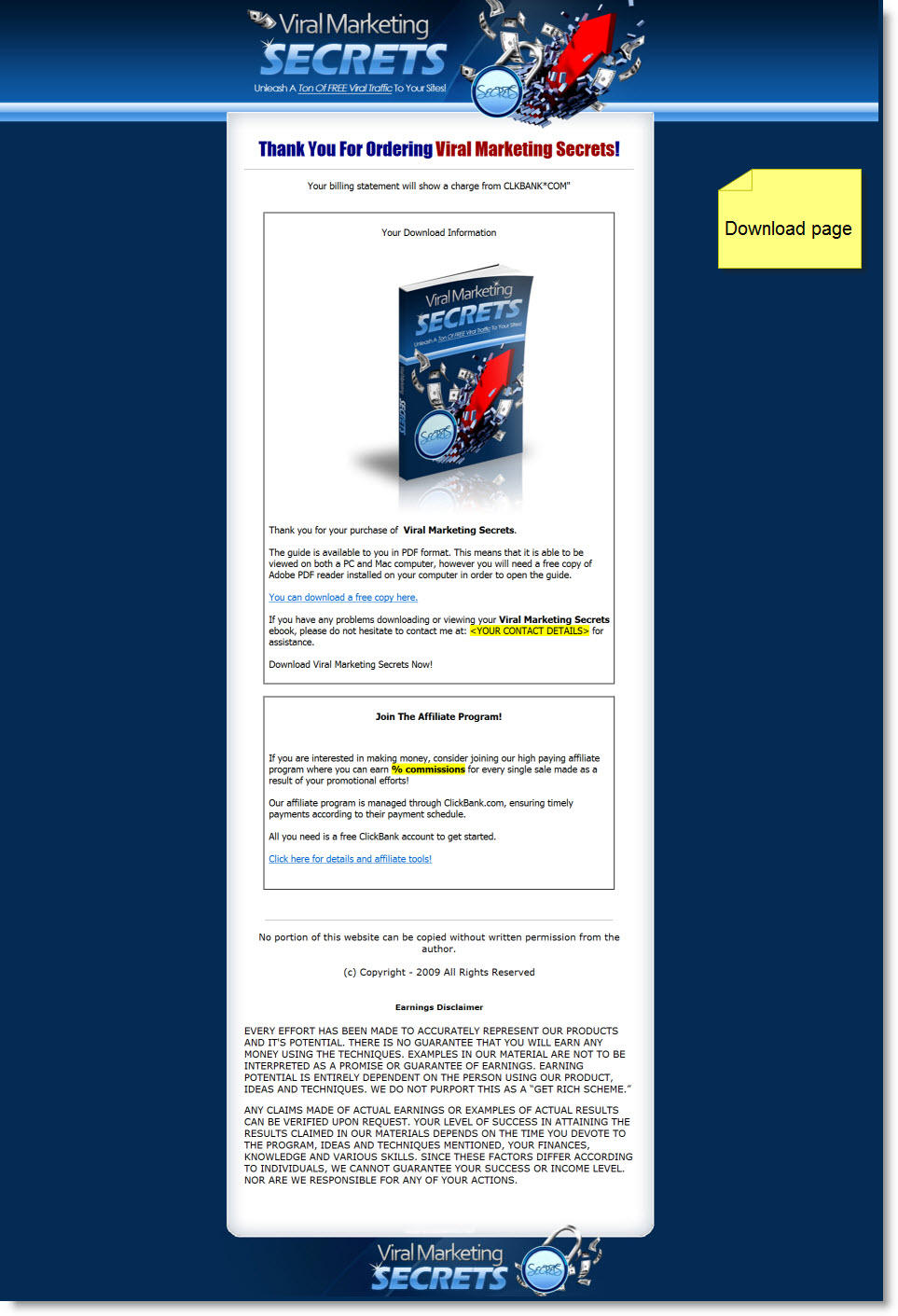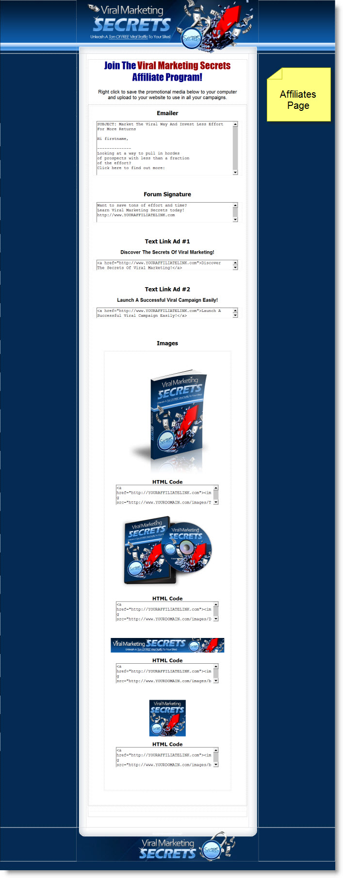 | Extra Pages: | Affiliates page (see above screenshot) |