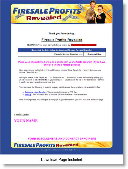 - How to setup your own firesale and begin generating mountains of profits immediately – you’ll be surprised – and thrilled – at how easy it is to do when you follow my simple tips!