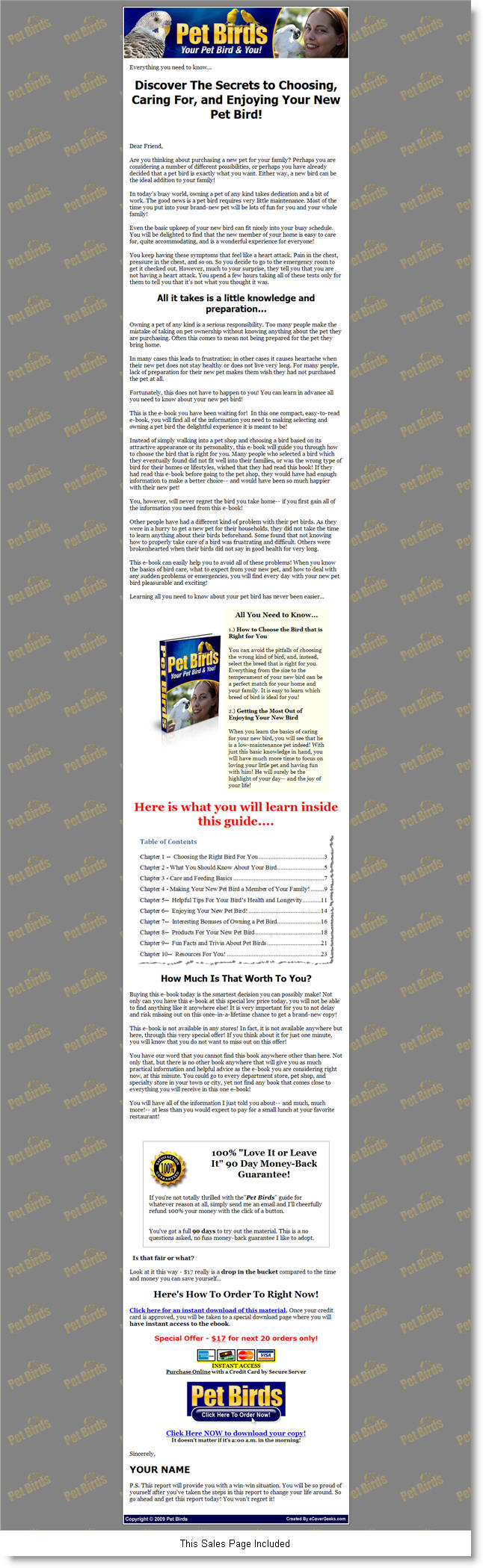 This e-book can easily help you to avoid all of these problems! When you know the basics of bird care, what to expect from your new pet, and how to deal with any sudden problems or emergencies, you will find every day with your new pet bird pleasurable and exciting!