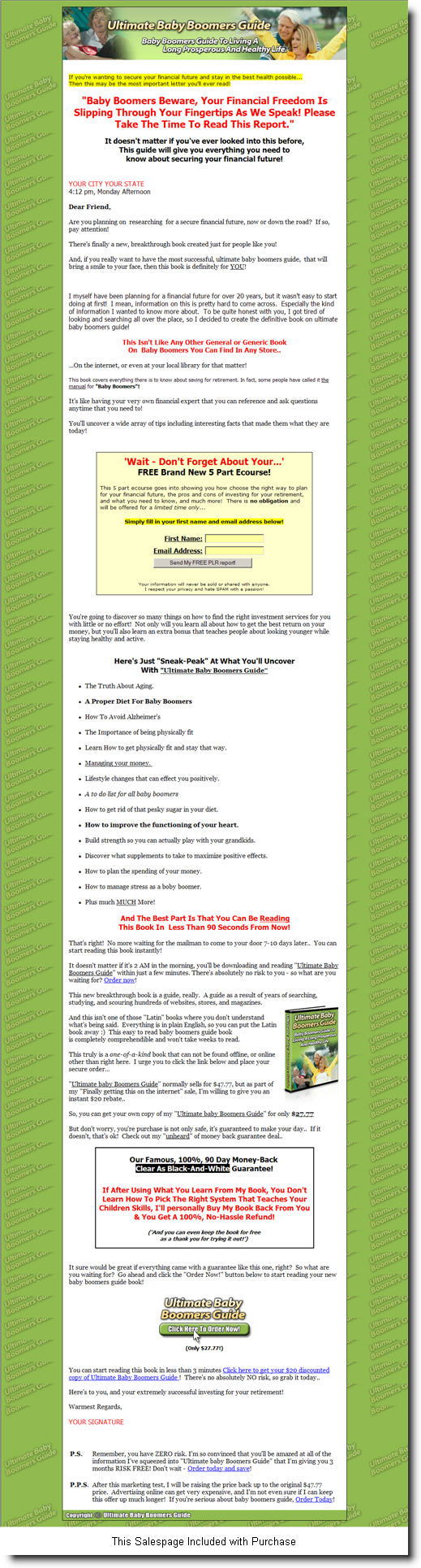 Salespage Excerpt: (See above screenshot of full sales page)