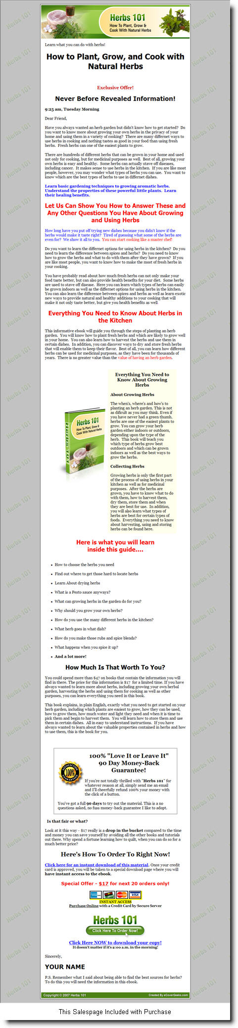 | Miscellaneous Graphics: | Standard salespage graphics |