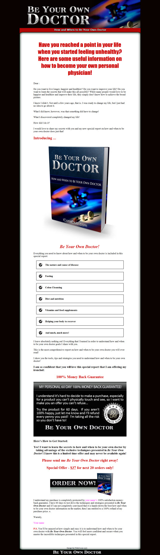 I would love to share my secrets with you and my new special report on how and when to be your own doctor does just that!