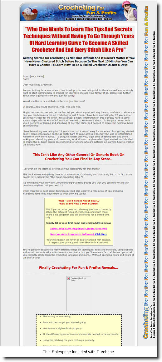 Crocheting Made Easy (PLR)It doesn't matter if you've never crocheted a day in your life, or your the most talented person in the world... This...