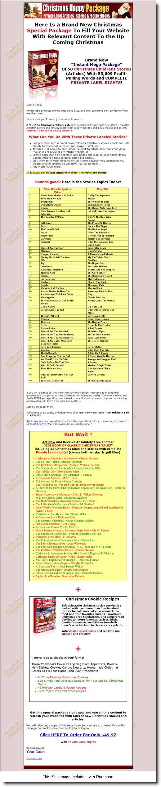 BIG BOOK OF CLASSIC CHRISTMAS TALES" including 35 Christmas tales and stories with complete Private Label rights!