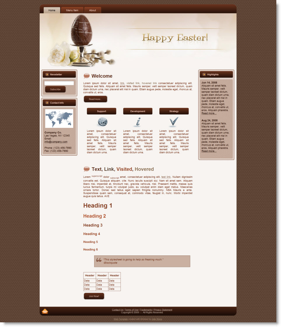 Get this very well designed template package that include working navigation buttons, button hover effects, Drop down menus and more. Each Template Comes with the Following: