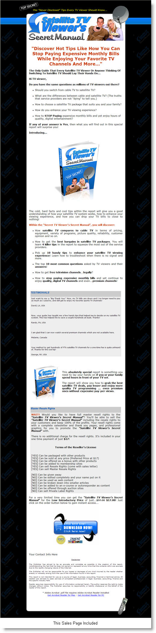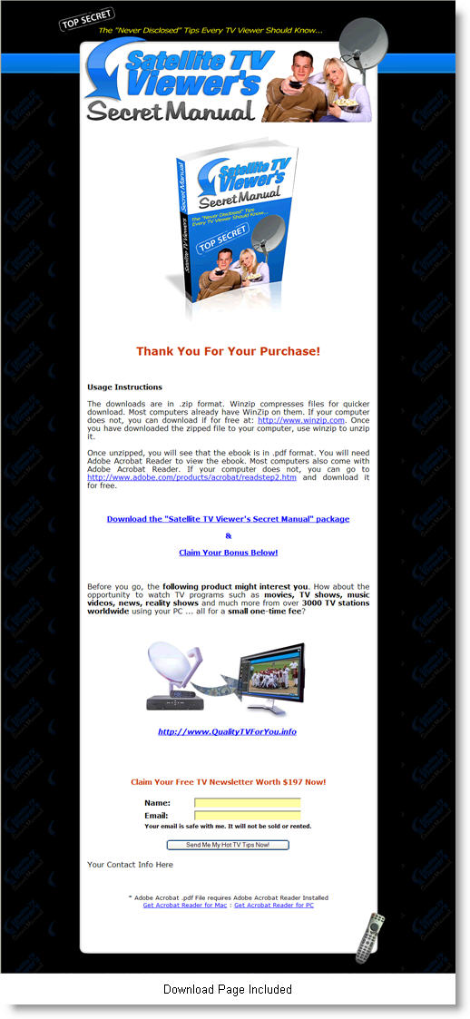 The cold, hard facts and cool tips within the report will give you a good understanding of how your satellite TV system works, how to enhance your viewing experience, and how you can drop your TV bills to close to nothing!