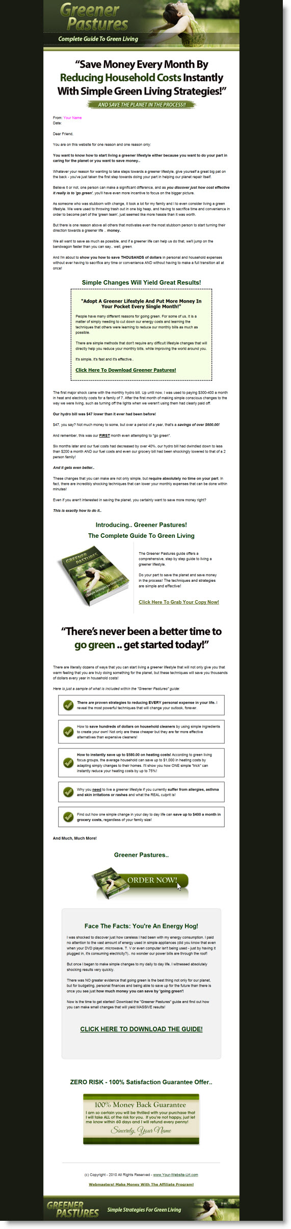 Here is just a sample of what is included within the "Greener Pastures" guide: