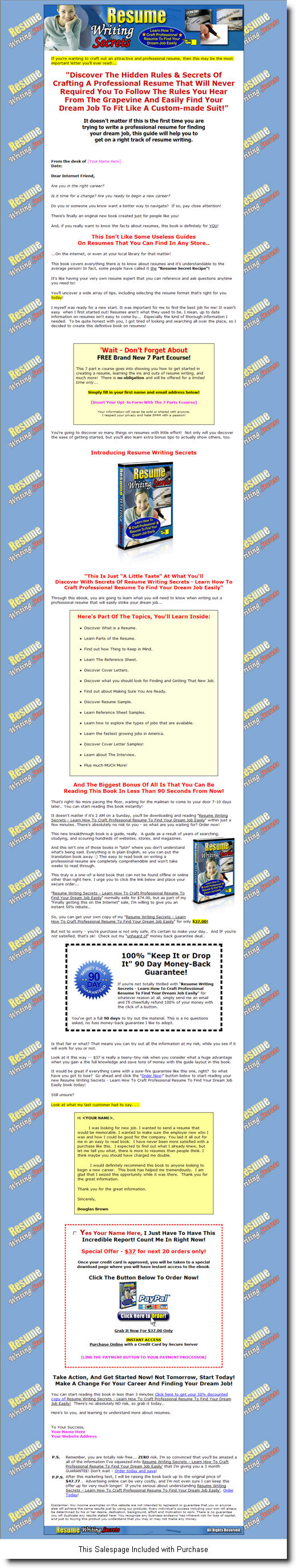 Professional Approach to Resumes and Cover Letters (PLR)The Best Resume You've Ever Written Or Your Money Back! Give Me 10 Minutes And I'll Have You Writing Resumes No Employer...