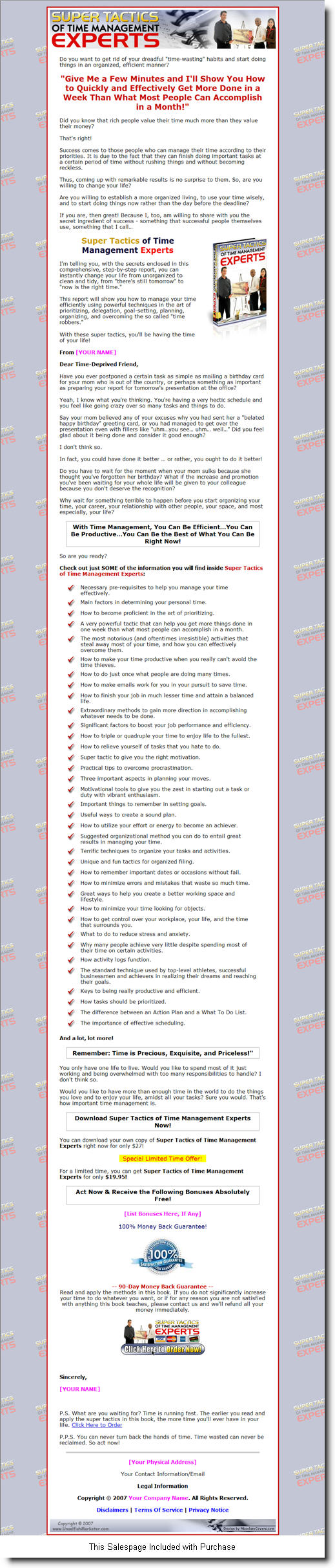 Check out just SOME of the information you will find inside Super Tactics of Time Management Experts: