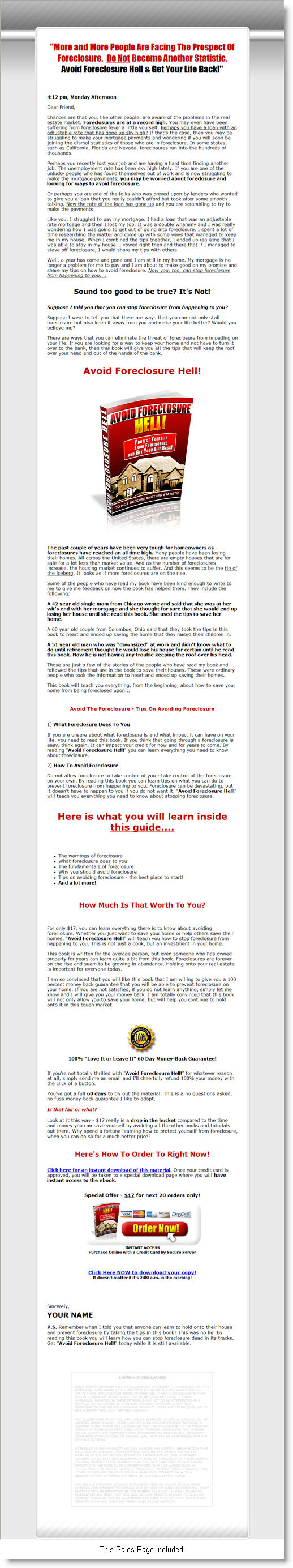 Do not allow foreclosure to take control of you - take control of the foreclosure on your own. By reading this book you can learn tips on what you can do to prevent foreclosure from happening to you. Foreclosure can be devastating, but it doesn't have to happen to you if you do not want it. "Avoid Foreclosure Hell!" will teach you everything you need to know about stopping foreclosure.