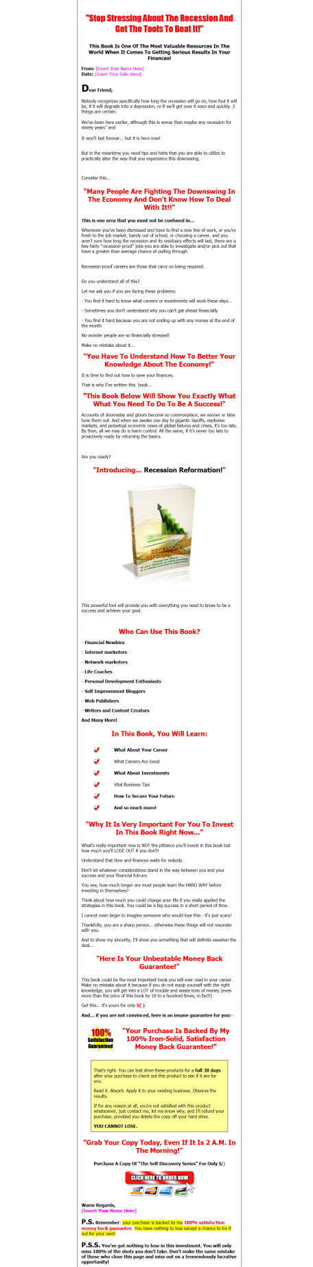 "Many People Are Fighting The Downswing In The Economy And Don't Know How To Deal With It!!"