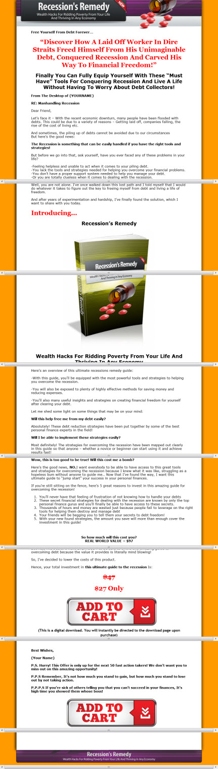 - With this guide, you'll be equipped with the most powerful tools and strategies to helping you overcome the recession.