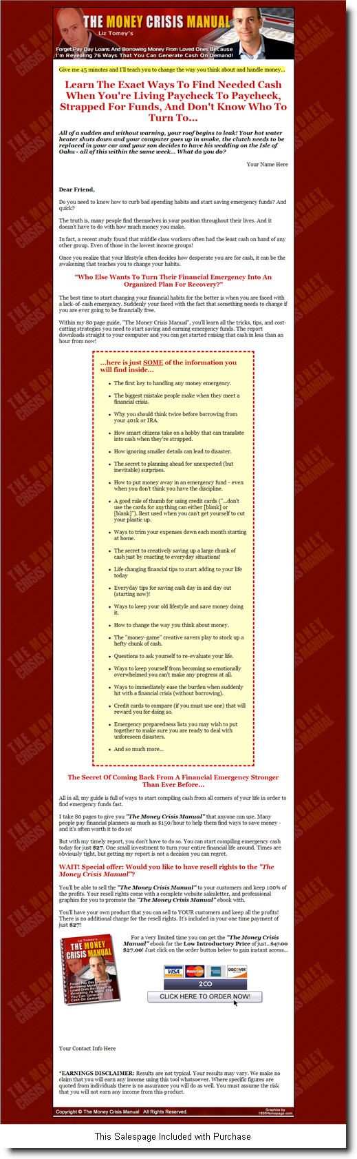 - Includes Sales Page - Yes