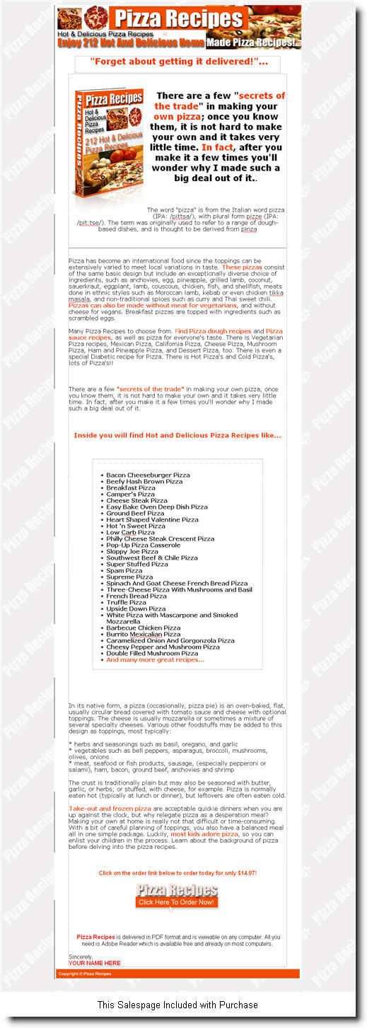 Inside you will find Hot and Delicious Pizza Recipes like...