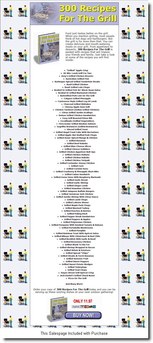 You can create delicious and mouth-watering meals on your grill. From appetizers to desserts, 300 Recipes For The Grill is packed with recipes that will impress your friends and family.