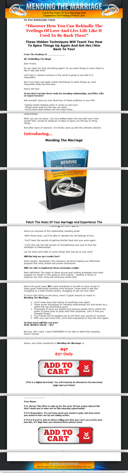 Save Your Marriage 2.0 (PLR)There are ways to save your marriage. Know about the unpleasant side of divorce and how to give your marriage another chance.