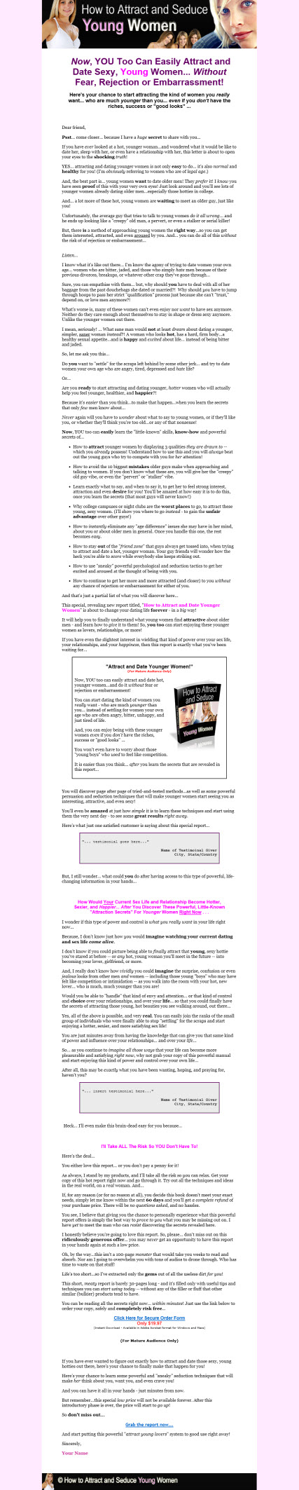 - Why college campuses or night clubs are the worst places to go, to attract these young, sexy women. (I'll show you where to go instead - to gain the unfair advantage over other guys!)