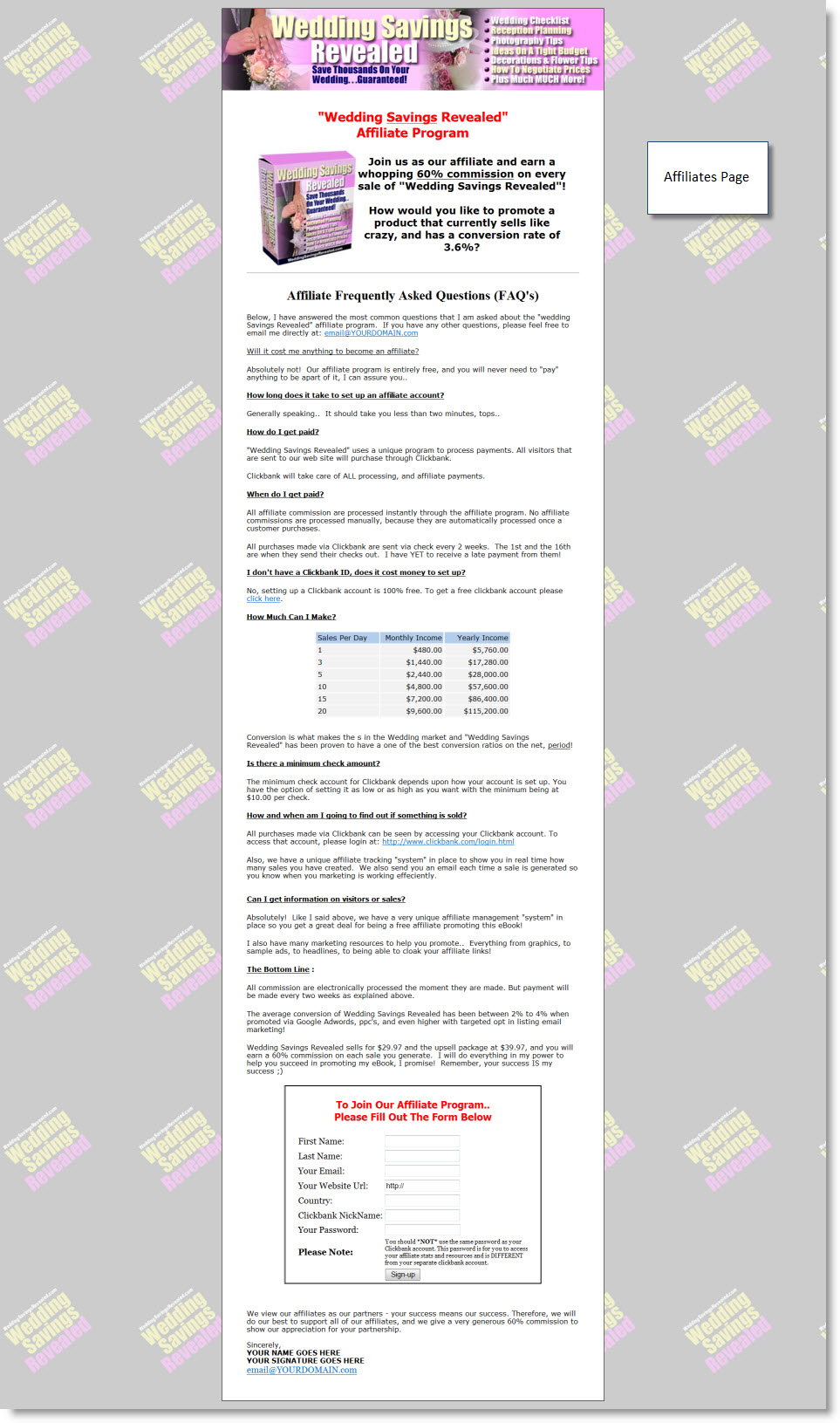 | Other Included Pages | Affiliates page | Master Resale Rights | Yes | May Modify Product | Yes |