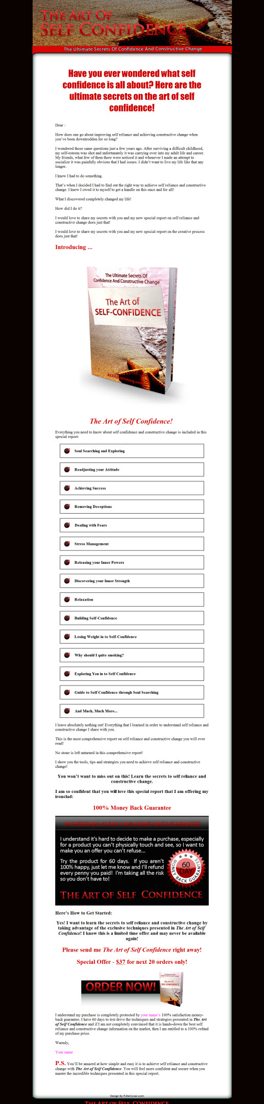 Everything you need to know about self confidence and constructive change is included in this special report: